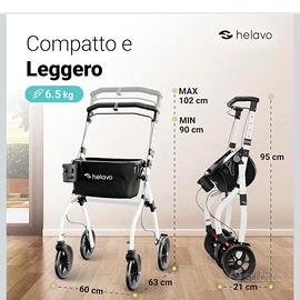 Deambulatore con 4 ruote per interni con vassoio, cestino e portabicchieri. Pieghevole, altezza impugnatura regolabile, con freno. Ottime condizioni, usato poche volte. Rollator - Deambulatore
