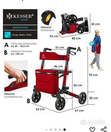 Usato in ottimo stato KESSER Leggero deambulatore pieghevole Girello ultraleggero con 4 ruote Premium in alluminio Peso 7,8 Chilogrammi Peso massimo sopportato: 136 Kg Il deambulatore si trova a Nettuno Ma posso consegnarlo a Roma