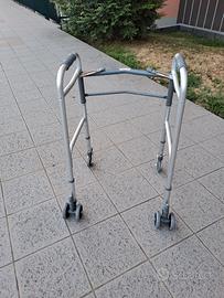 Deambulatore pieghevole, regolabile in altezza con 2 ruote piroettanti e 2 gemellate con sistema di frenata a pressione. Marca Health Medical Fab. Acquistato Agosto 2024, quasi mai usato.