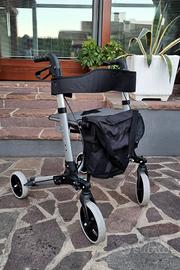 Deambulatore pieghevole, in alluminio, con seduta e dispositivo frenante. Molto leggero e maneggevole. Ritiro a carico dell'acquirente