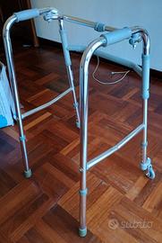 Deambulatore in lega di alluminio, supporto stabile e sicuro durante la camminata. Ideale per anziani, riabilitazione e mobilità ridotta, aiuta a mantenere autonomia e sicurezza negli spostamenti quotidiani. Struttura leggera 3,4 kg. Uso domestico e in esterno. Regolabile in altezza da 78,5 a 93,5 cm, si adatta facilmente a diverse stature. Impugnature ergonomiche. Colore: Argento Dimensioni: 50 × 35 cm Altezza regolabile: 79,5-91,5 cm. Peso netto: 3,4 kg Impugnature: Ergonomiche antiscivolo Utilizzo consigliato: casa, esterno, riabilitazione