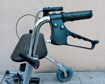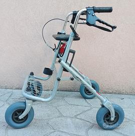 Il deambulatore appare in buone condizioni generali, con alcuni segni di utilizzo ma ancora ben funzionante.