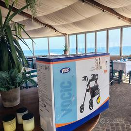 VOCIC deambulatore per anziani 4 ruote,NUOVO ancora con il cellophane sulle ruote (sbagliato acquisto). Girello in alluminio leggero con seduta, pieghevole, cesto portatutto, tutto regolabile,|5 anni di garanzia. molto bello.