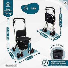 Deambulatore pieghevole per anziani, Carrello spesa capienza 21 l. Come nuovo