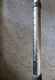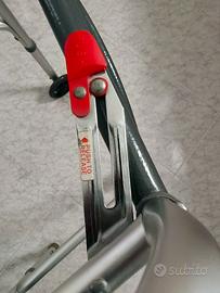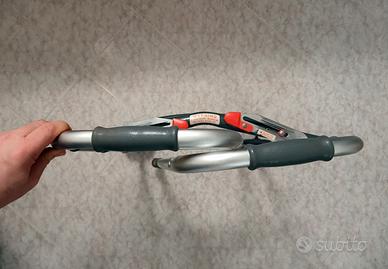 Deambulatore ripiegabile, chiusura rapida con pulsante. Altezza regolabile in 8 posizioni senza necessità di attrezzi, due ruote rimovibili a direzione fissa. Dimensioni da chiuso 85x63x10 cm, peso 2,8 kg
