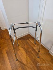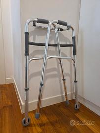 Solo su Roma. Vendo deambulatore pieghevole professionale della Intermed, modello AD-AR3. E' praticamente nuovo e in condizioni estetiche e funzionali perfette. Il modello AD-AR3 è estremamente versatile grazie alla sua struttura "ibrida": Massima Stabilità: Dispone di due gambe anteriori con ruote fisse da 3" (circa 7,6 cm) per facilitare il movimento e due gambe posteriori con puntali in gomma antiscivolo per garantire una frenata sicura. Regolabile in Altezza: Le gambe sono regolabili per adattarsi perfettamente alla statura dell'utilizzatore. Pieghevole e Salvaspazio: Si chiude facilmente con un pulsante, rendendolo ideale per essere trasportato in auto o riposto in casa senza ingombro. Leggero e Resistente: Realizzato in alluminio anodizzato di alta qualità, facile da manovrare ma molto robusto. Impugnature ergonomiche: Manopole in gomma morbida per una presa sicura e confortevole. Dettagli Tecnici: Marca: Intermed S.r.l. Certificazione: Dispositivo Medico (MD) Classe I con marchio CE. Stato: Come nuovo, usato pochissimo.