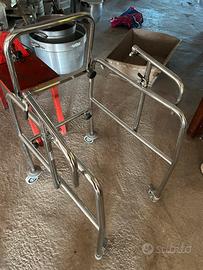 Deambulatore pieghevole in alluminio con ruote e freni. Poco usati, ottime condizioni.