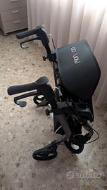 Vendesi, per errato acquisto, deambulatore rollator con struttura in alluminio a quattro ruote, anteriori piroettanti da 10" posteriori da 8" con sistema frenante.Il telaio è pieghevole per ridurne gli ingombri durante il trasporto. Dotato di pedane anteriori ripiegabili. Possibilità di essere usato sia come girello che sedia a rotelle. Condizioni assolutamente pari al nuovo e senza difetti. Consegna preferibilmente a mano in zona/provincia.