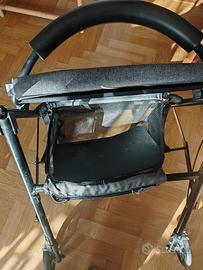 Deambulatore a 4 ruote, in buono stato,ideale per garantire stabilità e autonomia sia in casa che all'aperto. Robusto ma facile da manovrare. Pieghevole e facile da mettere in auto. Seduta ampia per riposarsi. Freni a leva sulle comode impugnature. Include pratico portaoggetti/borsa. Disponibile per visione e prova a Roma, zona Cinecittà. Ritiro a mano.