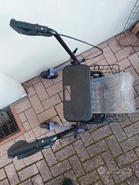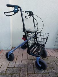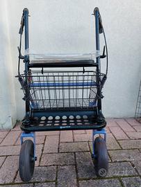 Deambulatore rollator pieghevole per anziani e disabili con seduta e cestino.