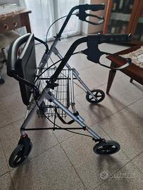 Deambulatore per interno /esterno adattabile in altezza. Si ricchiude e occupa poco spazio in auto. Seduta comoda e cestello. Freni di sicurezza 60 euro visto e piaciuto Tel 3296463280