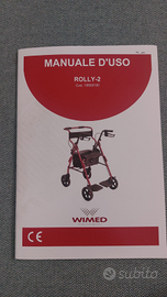 Il rollator 2 presenta due funzioni: sia da ausilio per la deambulazione sia da carrozzina da transito. Costituito da un appoggio per la schiena, maniglione di spinta per accompagnatore, pedane indipendenti e impugnature anatomiche regolabili in altezza con leve per i freni.