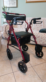 Rollator in alluminio pieghevole e facilmente richiudibile per uso esterno/interno.
