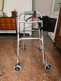 Deambulatore Ultraleggero Pieghevole con Freni di Sicurezza e Ruote da 18 cm, completo di borsa frontale porta oggetti Usato poco, come nuovo