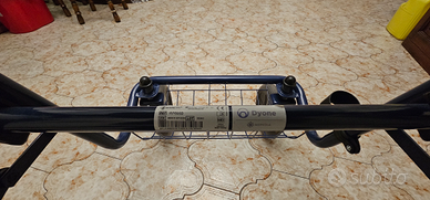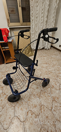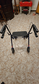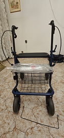 Deambulatore, nuovo, purtroppo mai usato con ruote grandi. doppio freno. E bloccaggio ruote. Pieghevole . Con cesto porta oggetti.