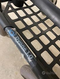Dotato di freni sulle ruote posteriori a doppia funzione.