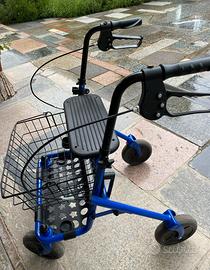 Deambulatore pieghevole per anziani, con seduta, cestino, porta bastone e vassoio portaoggetti. Usato pochissimo. Ottime condizioni