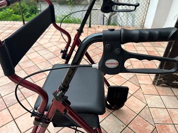 Rollator in alluminio pieghevole e facilmente richiudibile per uso esterno ed interno.