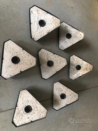 Basi triangolari pesanti con foro centrale, molto stabili (con riempimento in cemento), adatte all'uso esterno in ottimo stato
