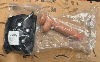 Occasione scontatissimo dildo molto realistico, nuovo mai usato ancora sigillato in confezione, completo di fascia pelvica di fissaggio per usarlo come strapon, anch'essa nuova mai usata nella sua confezione. Vendo a prezzo veramente d'occasione per un set nuovo così completo.