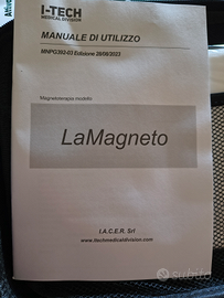Dispositivo medico per magnetoterapia "LaMagneto" studiato ed indicato per i trattamenti di riabilitazione e recupero funzionale di patologie a carico dell'apparato motorio scheletrici, articolazioni, fratture, atrofie e distrofie muscolari e per i trattamenti di cura di osteoporosi, neuropatie e tanto altro ancora.