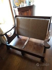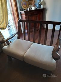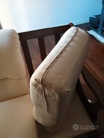vendo 2 divanetti in legno di Noce massiccio, completi di cuscini in cotone e sfoderabili. Per cambio stile arredativo., Praticamente nuovi.