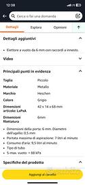 o Dimensioni della porta: 6 mm. Diametro dell'ugello: 0,5 mm