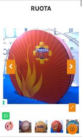 Espositore Pubblicitario Rotondo 250 l x 218 h x 40 p. Solo struttura. Acquisto e mai utilizzato comprensivo di sacca originale per il trasporto e documento con istruzioni per il montaggio. Materiale: fondale pubblicitario in alluminio e tessuto caratterizzato dalla forma circolare a "ruota". Stampa: su tessuto elasticizzato 220gr/mq per rivestire integralmente la struttura "a sacco". F.to cm 250 l x 218 h x 40 p. Segni Particolari: backdrop innovativo la cui esposizione tridimensionale viene enfatizzata dalla forma tonda. Il telaio portante è in alluminio, con tubi ad innesto semplicemente ad incastro. Leggero, facile da trasportare con la borsa di trasporto in dotazione. Il fondale Ruota è robusto e leggero, risulta ideale per uso indoor(per l'eventuale impiego all'aperto - in condizioni meteo ottimali - si consiglia di ricorrere a zavorre / escl. ). Controllo qualità: Le strutture in alluminio della linea WAVE vengono montate e allestite con stampa prima della spedizione al cliente. Eventuali segni presenti sui tubolari (non visibili una volta posizionata la stampa) sono attribuibili a queste operazioni. Il principio di montaggio e personalizzazione del fondale grafico grafico è comune a diversi nostri espositori: scopri tutte le nostre applicazioni alluminio + tessuto WAVE Peso e ingombro dell'espositore smontato: cm 29x29x82 - 8kg