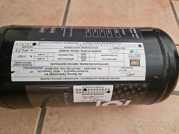 Vendo per inutilizzo estintore brandeggiabile in acciaio compreso di staffe e fascette in alluminio omologato Fia prodotto estinguente EcoLife kg 3.5 scaduto Gennaio 2026 facilmente ricaricabile.