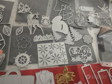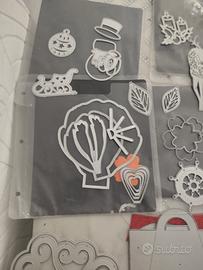Fustelle in metallo in buone condizioni di varie misure per big shot sizzix complete anche di 10 fogli magnetici per contenerle