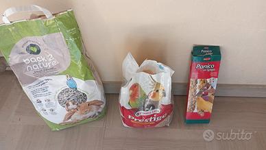 Aggiungo anche la lettiera, semi e panico.