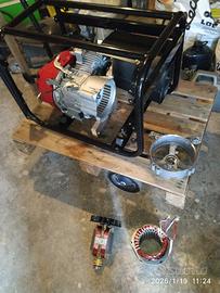 vendo generatore smontato con statore bruciato, rotore in ordine e motore nuovo. Alla prima mesa in moto si è bruciato lo statore, perciò è tutto nuovo. Si può usare il motore per altri scopi (pompa).