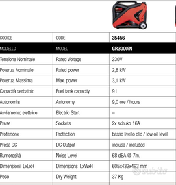 Generatore inverter a benzina silenziato usato solo una volta corredato di libretto di istruzioni e manutenzione praticamente come nuovo solo qualche graffietto qua e la . N.B. Nelle foto ci sono tutte le caratteristiche .