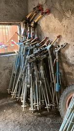 Getti per irrigazione agricola con copertura di almeno 20m di raggio più accessori per congiunzione getti a tubi di irrigazione. Si intende vendere in un unica soluzione tutto il materiale presente in foto, costituito da: 20 pippette, 20 curve, 10 tappi, 5 riduzioni, 2 saracinesche e 25 getti.