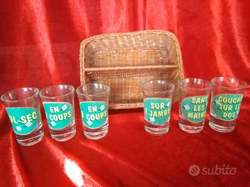 Il set include 6 bicchierini per bere con gli amici giocando con cestino contenitore.