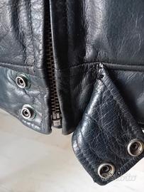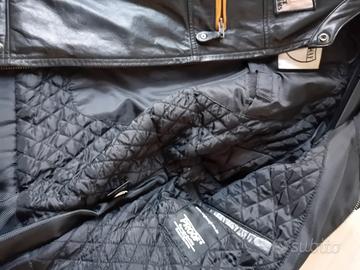 Giubbino in Pelle per donna taglia S. Modello sportivo. Regolabile in vita. Tasche esterne con chiusura zip e diverse tasche interne, una tasca interna sulla schiena per inserire la protezione, facoltativo. Io non l'ho mai messa. Materiale: