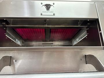 We-grill Hereford infinity Elettrico - We Grill 2 piastre in vetroceramica Struttura acciaio inox Dimensioni: L800 x P675 x H716 Display Touch 9 kw/h Trifase 1 griglia in dotazione Dim. griglia: L460 x P480 5 livelli di potenza Carico/scarico acqua 3/4" Usato solo pochi mesi vendo per passaggio a griglia diversa