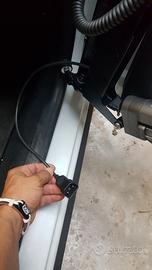 Si monta in un minuto sulle cerniere dello sportello dopo la rapida regolazione iniziale. si collega all' accendisigari o al cablaggio 12v della macchina.