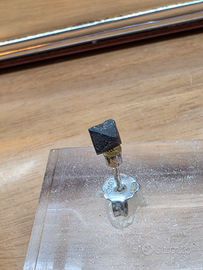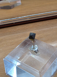 Esemplare di hauerite proveniente dalla storica località di Raddusa (CT), uno dei giacimenti più celebri al mondo per questa rarissima specie minerale. Il cristallo si presenta ben formato, con abito ottaedrico netto e spigoli ben definiti, caratterizzato dal tipico colore nero-grigio scuro con leggere sfumature opache, assolutamente coerenti con la specie.