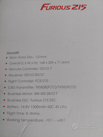 Vendo Drone FPU RACE WALKERA FURIOUS 215 come nuovo per inutilizzo.