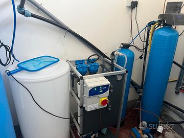 - N°1 Addolcitore bi-blocco da 50 litri di resina: Bombola in VTR, resina cationica forte per addolcimento, comandata da una valvola CLACK Volume da 1", tino per sale da litri 100;