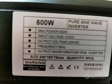 Vendo inverter 12/220 volt a onda pura da 600 watt