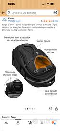 Kurgo G-Train - Zaino Trasportino per Animali Domestici di Piccola Taglia, Zaini per Cani e Gatti, per viaggi, Fondo Impermeabile, fino a 11 kg ACQUISTATO A 140 € ED USATO UNA SOLA VOLTA PERCHÉ RISULTA TROPPO GRANDE PER IL MIO MALTESE Ritiro via Prenestina - Collatina
