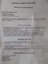 La lampada a raggi infrarossi INFRATECH funziona a corrente 220v con due diverse intensità regolabili, livello I e II ovvero potenza ridotta ed elevata.