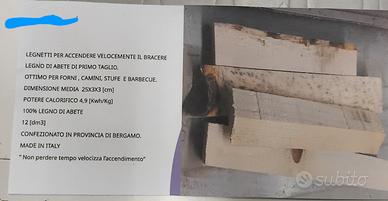Vendo sacchi di legna fine di primo taglio per accendere il focolare. Ideale per forni, stufe , camini, barbecue. 6[kg] a 4,5€. Più sacchi ci si accorda. Recapito Bergamo e provincia.