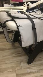 Schienale regolabile manualmente, porta rotolo e ripiano porta strumenti.