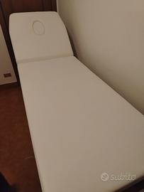 Lettino da massaggio usato ma come nuovo, in ferro robusto e imbottitura di alta qualità. Colore bianco, design elegante e professionale.