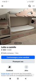 Letto a castello bambina ..scalini contenitore ...due cassetti..materassi nuovi..lunghezza 2,50 profondità 0,95 altezza 1,63..smontaggio e trasporto a carico dell acquirente