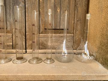 Lotto 9 contenitori: 7 cilindri e 2 ampolle