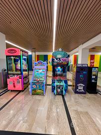 Giostrina a gettoni,gruetta peluche (n.3),giochi con vincita a ticket (n.3),cambiamonete/gettoni.